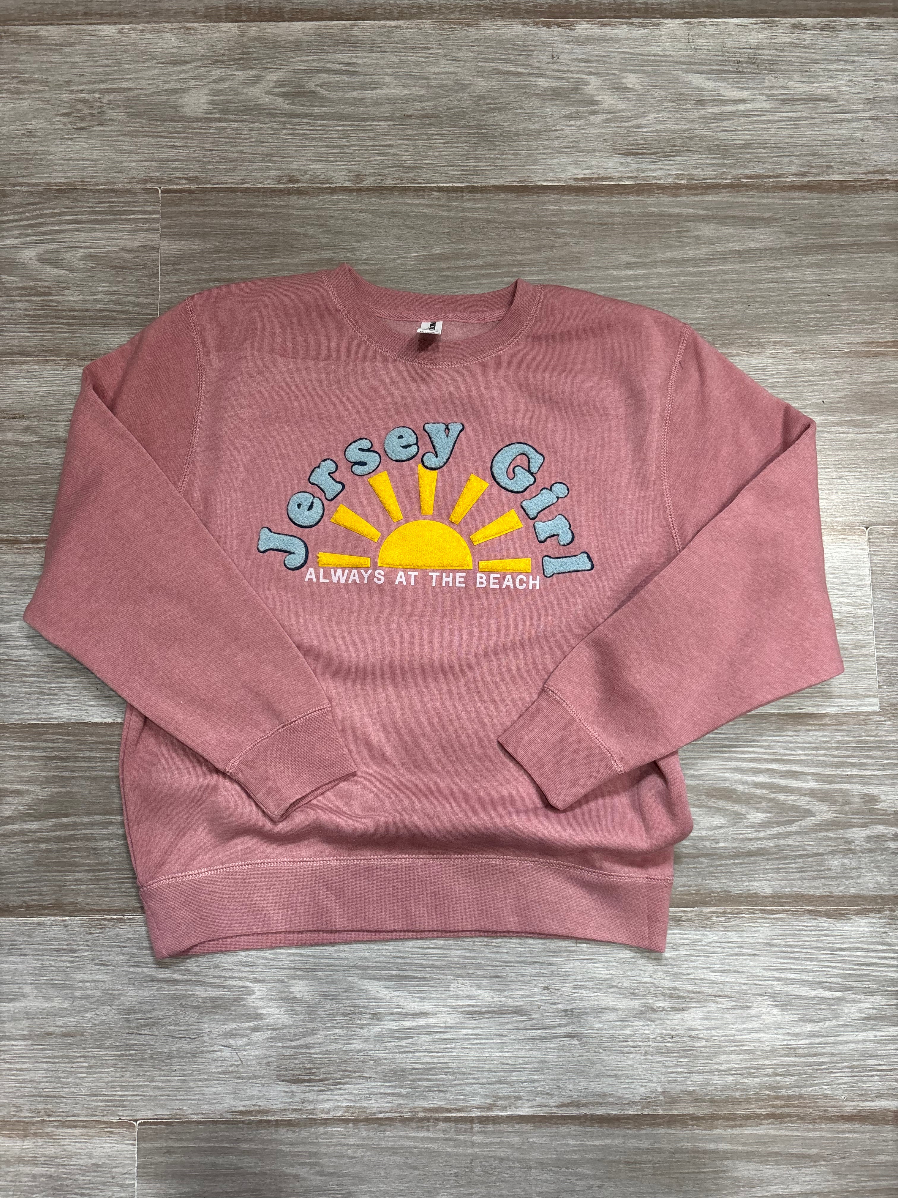 Jersey Girl Always At The Beach Youth Chenille Sweatshirt in Mauve Embrace coastal living with this expertly crafted youth sweatshirt featuring premium chenille construction. The mauve colorway delivers a sophisticated, on-trend aesthetic that pairs effortlessly with any wardrobe. Designed for the girl who lives for beach days and island vibes, this piece combines comfort with style. The durable chenille fabric provides a luxurious feel while maintaining its shape through regular wear. Perfect for layering over your favorite tee or wearing solo during cooler months by the shore. A versatile essential that captures the carefree spirit of Jersey beach culture.