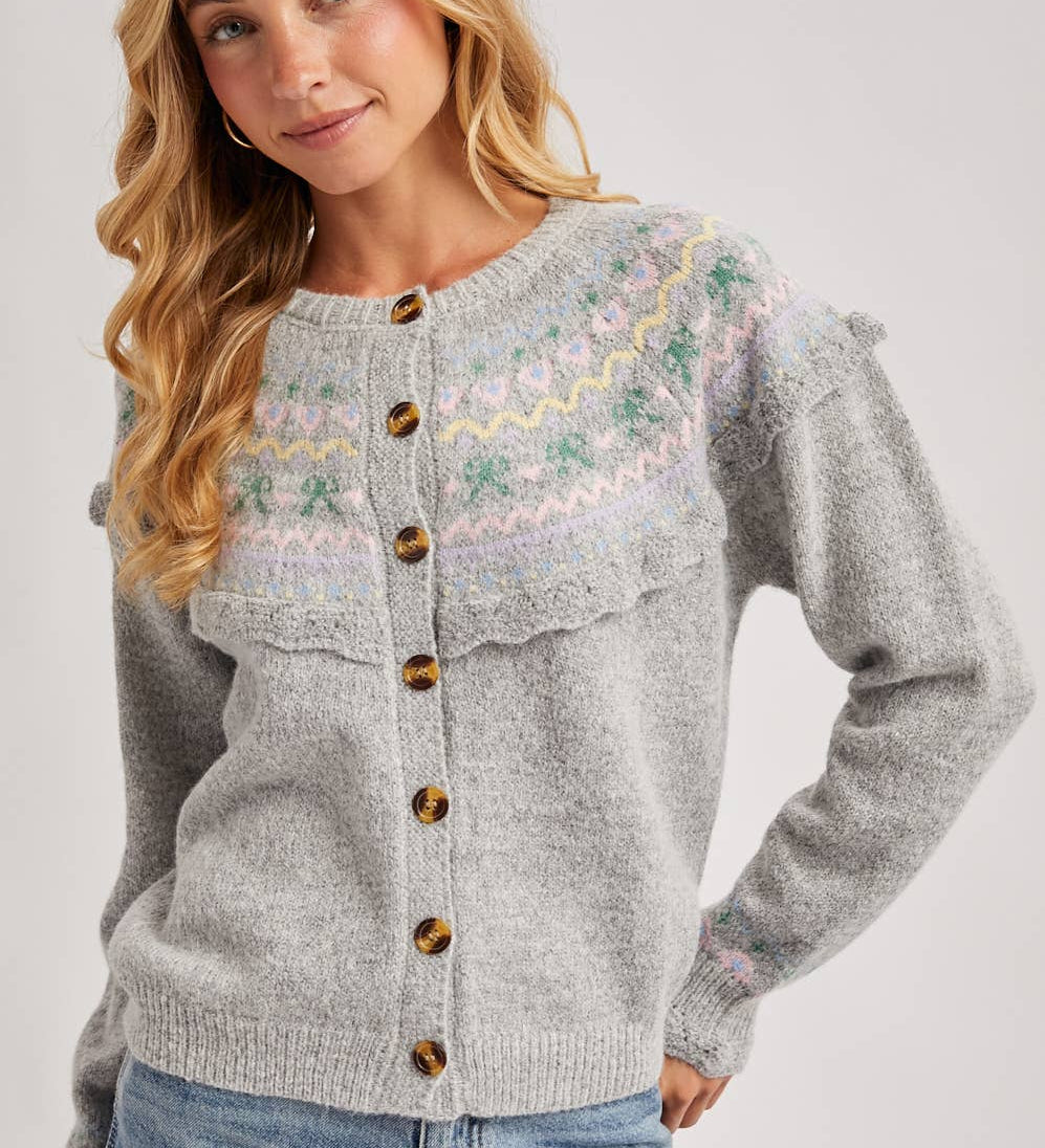 Bluivy - BUTTON FRONT FAIR ISLE KNIT SWEATER TOP