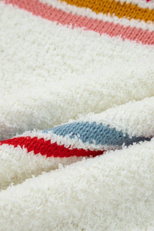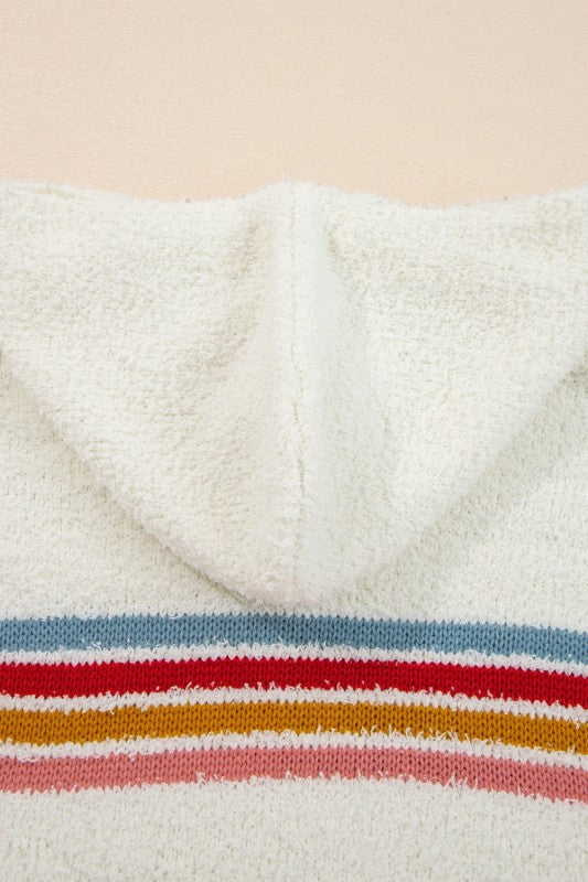 Meet Lumikara accent Hooded Popcorn Sweater—effortless, flattering, and easy to style for everyday life. Stay stylish the whole season in this chic sweater. This cozy popcorn sweater features trendy stripes and ribbed trim. Multicolored striped accents add vibrant, playful energy. The hooded design makes it a more casual look.