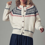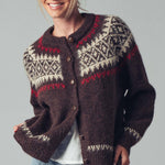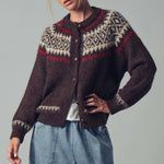 Wrap yourself in cozy charm with this Fair Isle knit cardigan, featuring a Nordic-inspired pattern and soft wool-blend texture. Unique toggle buttons, ribbed trim, and a relaxed fit make it a perfect layering piece for fall and winter looks.