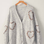 Urban Daizy - Heart Pattern V-Neck Wool Blend Cardigan