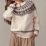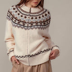 This cozy wool-blend cardigan brings timeless Nordic charm to your cold-weather wardrobe. Featuring a traditional Fair Isle pattern and central zipper, it’s perfect for layering over your favorite basics all season long.