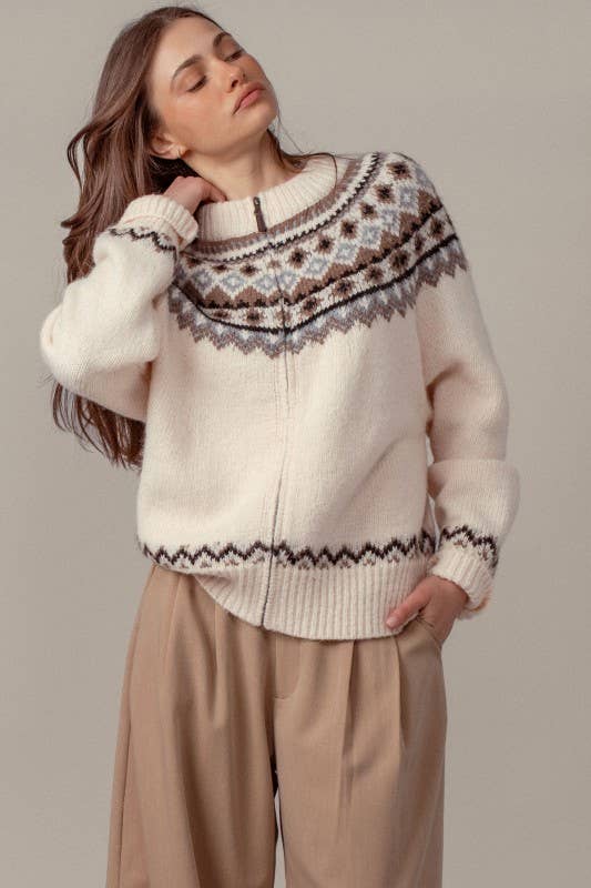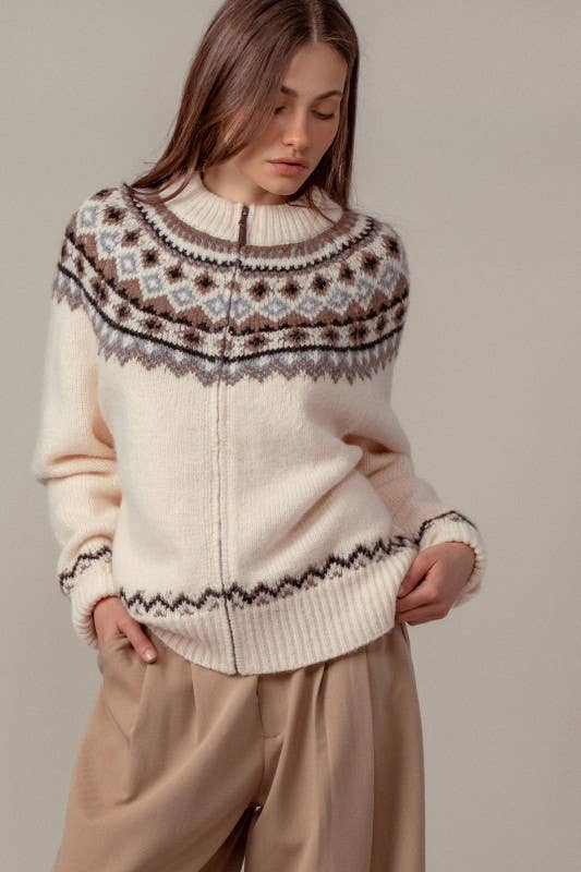 Urban Daizy - Nordic Zip-Up Wool Blend Cardigan