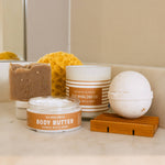 This 8oz body butter jar is perfect for bathrooms and bedside tables! Also available in an 2oz travel size.