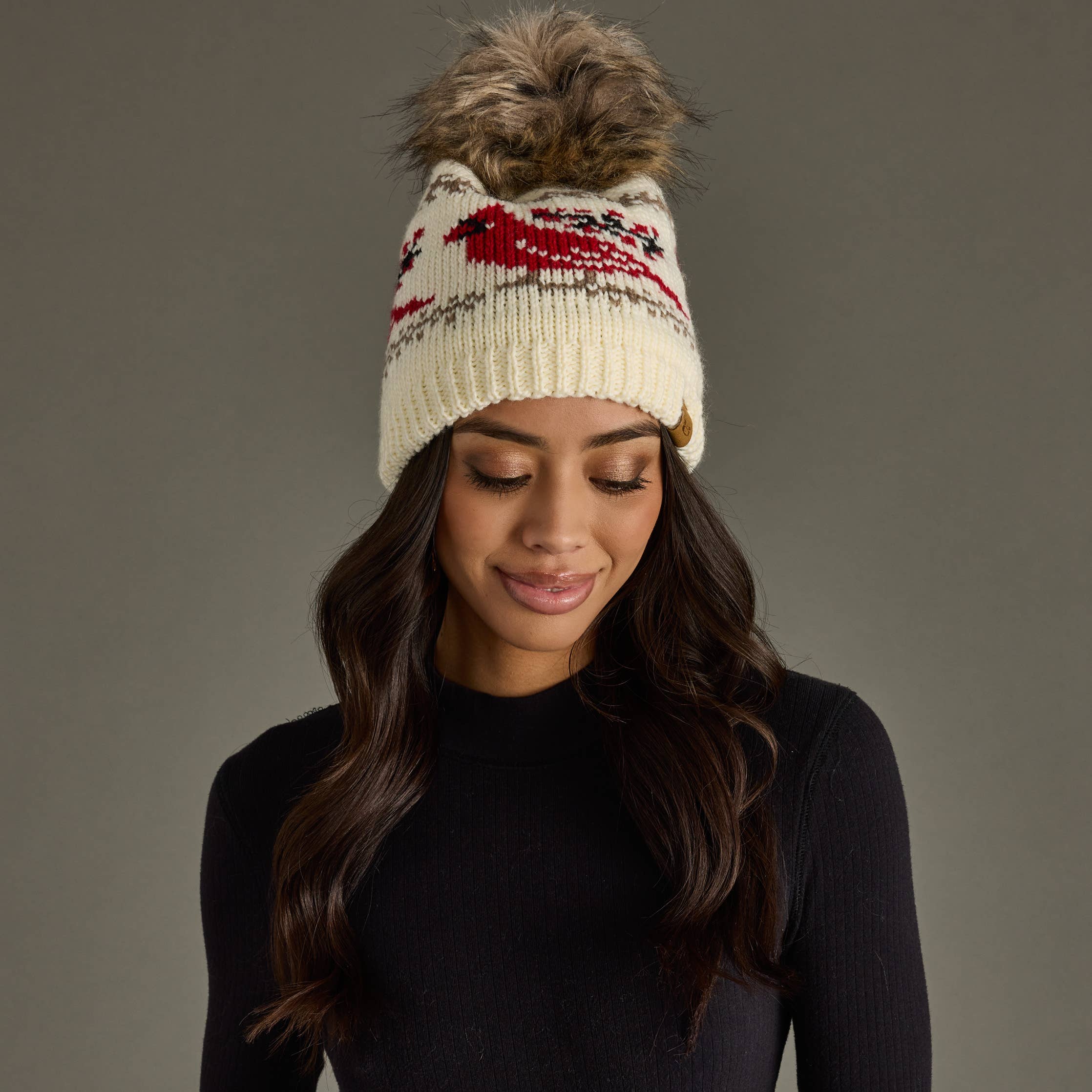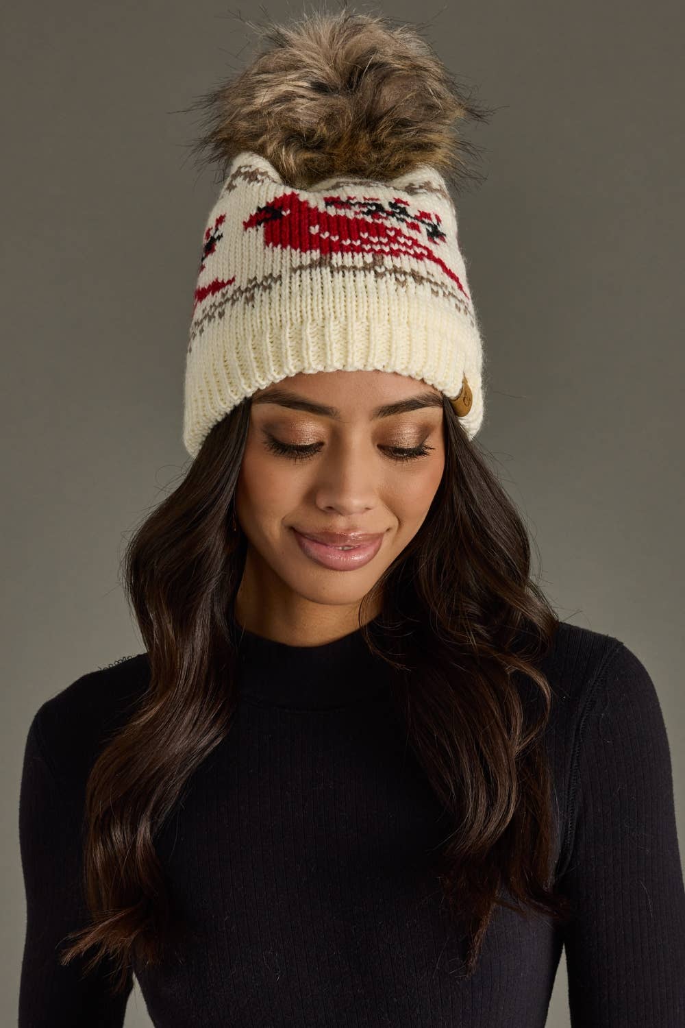 Panache Apparel Co. - Ivory Cardinal Pattern Pom Hat