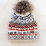 Panache Apparel Co. - White, Navy & Orange Patterned Pom Hat