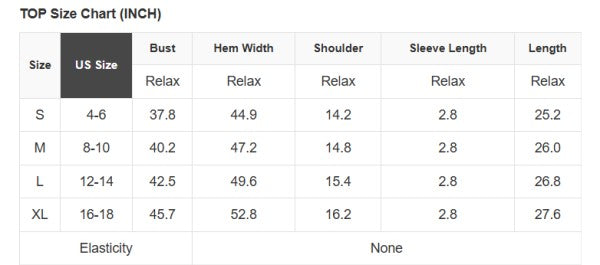 See size chart for approximate measurements.