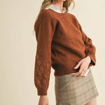 &MERCI - FLORAL KNIT PUFF SLEEVE SWEATER MSW10912