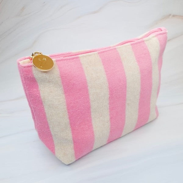 Our cosmetic case features a timeless and modern striped design, this case is perfect for travel or everyday use. Keep your essentials organized and accessible in style.