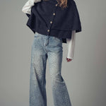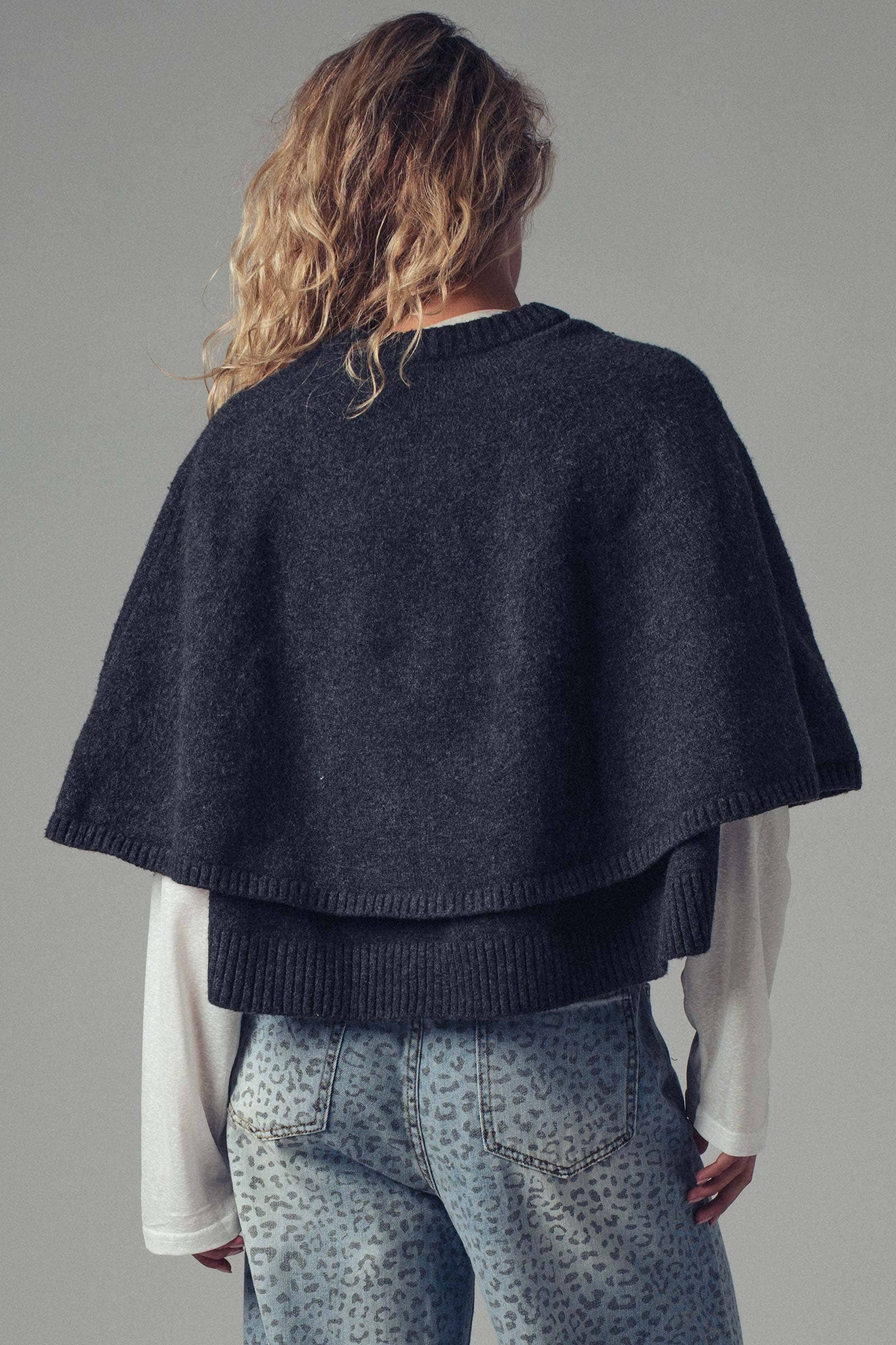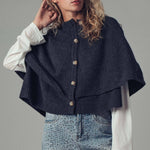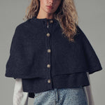 Urban Daizy - Wool Blend Button-Front Sweater Cape